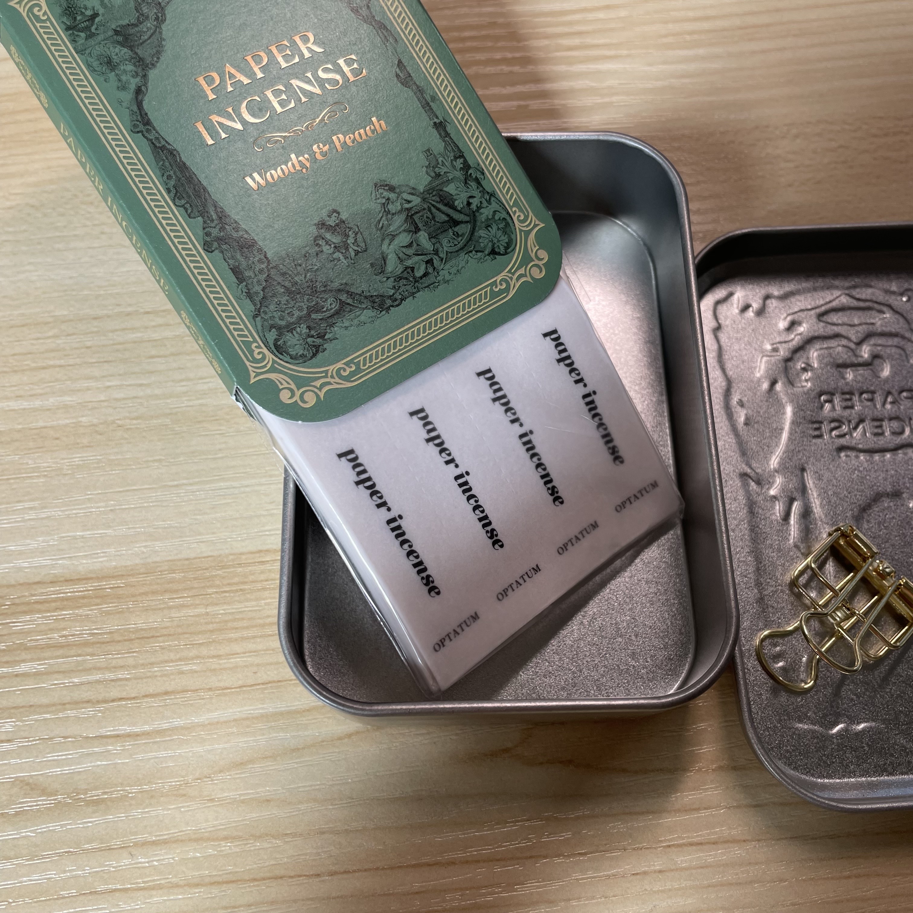 틴케이스 내부에는 이렇게 페이퍼 인센스와 클립이 들어있어요.