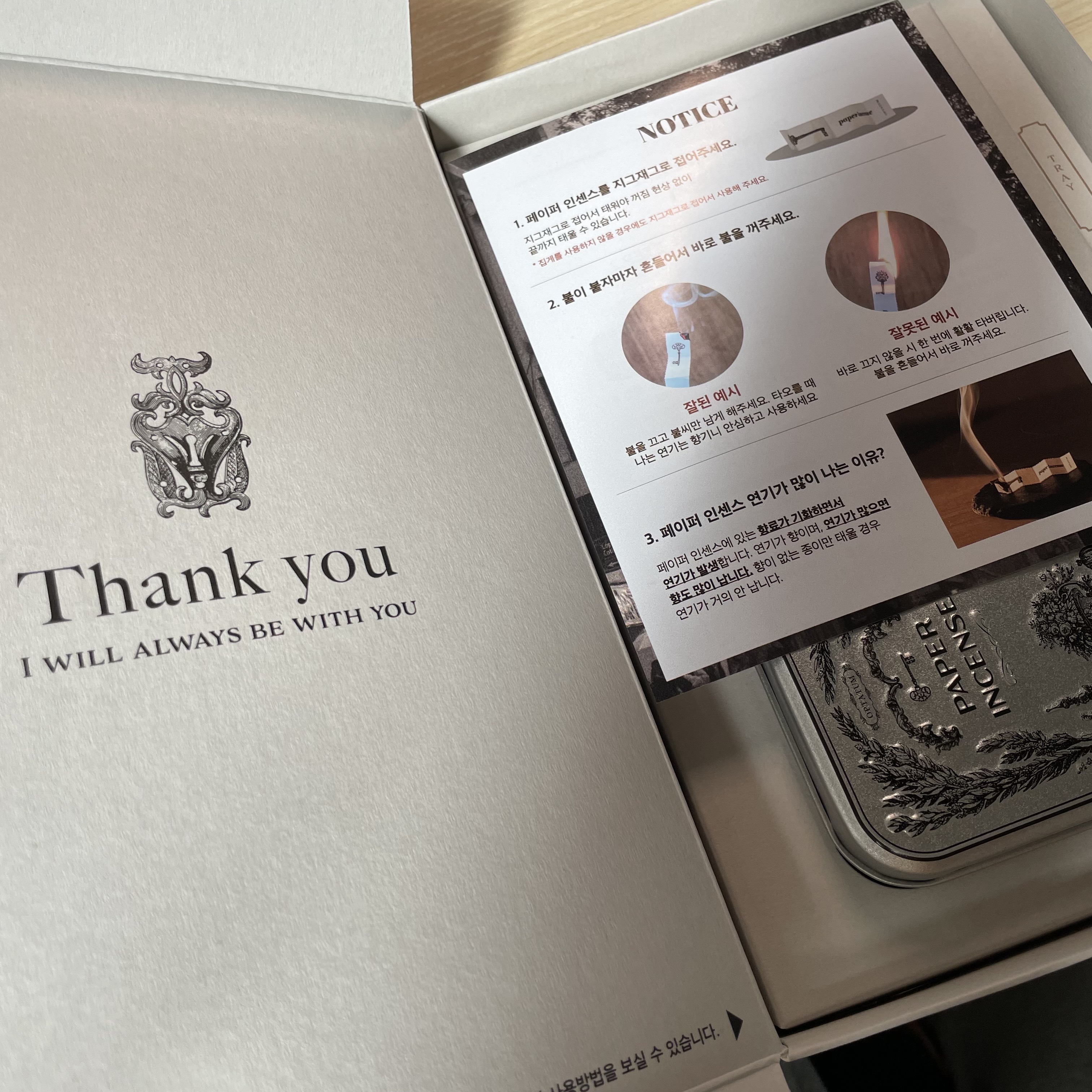 안에 페이퍼 인센스와 트레이가 담겨 있었습니다.